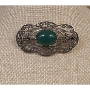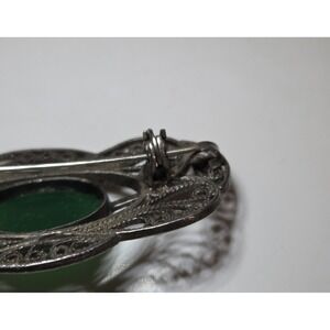 Stunning Art Nouveau Sterling Silver & Jade Brooch / Pendant