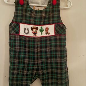 2nd overalls - plaid with cowboy theme