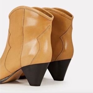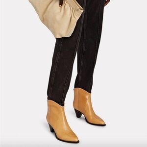 Isabel Marant Darizo Leather Western Embroidered Booties Natural Tan Size 38