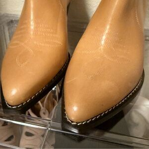 Isabel Marant Darizo Leather Western Embroidered Booties Natural Tan Womens Size 38