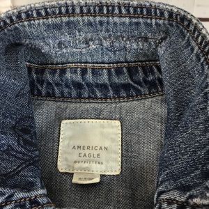 American Eagle Outfitters Limited Edition Graffiti Print Denim Jacket. Women’s XS. Show some distressing, mainly on collar. Please See All Pictures For Approximate Measurements. Thank you for shopping my closet.☀️N