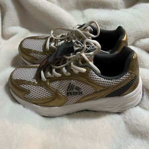 Metallic Gold and white reebok sneakers new with tag
