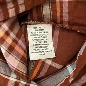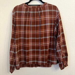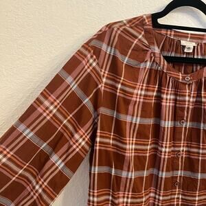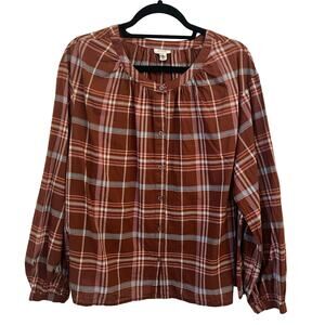 a.n.a. Womens Peasant Blouse 0X XL Plaid Boho Button Brown Cotton Lightweight
