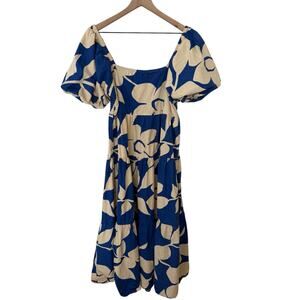 Meadow Rhode Cottagecore Dress Size XL Blue Floral Puff Sleeve Maxi Cotton