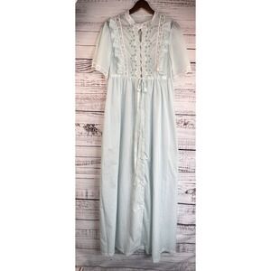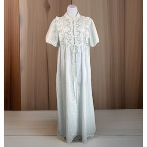 Vintage Cottagecore Dress M Nightgown Robe Embroidered Eyelet Lace Ruffle Ribbon