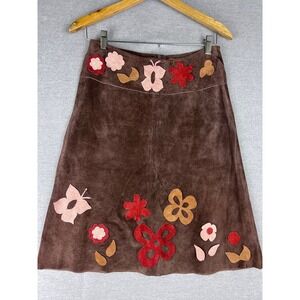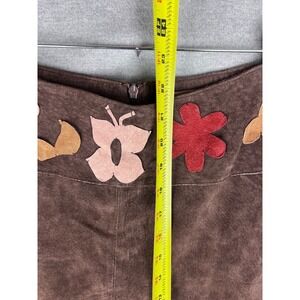 Arden B Brown Suede Leather Mini Skirt Floral Butterfly Applique Boho Womens 4