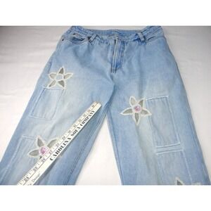 Jeanology Newport News Womens Jeans Star Mesh Cutouts Embellished Denim Sz 16