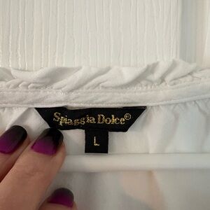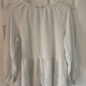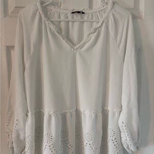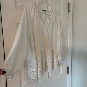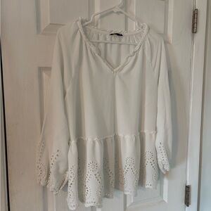White Eyelet Lace Peplum Blouse Boho Cottagecore Flowy Top Size L