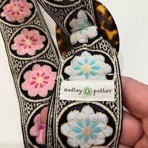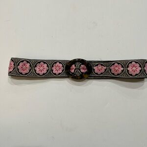 Hadley Pollet Pink & Blue Reversible Fabric Belt with Tortoise Buckle Sz. M