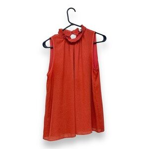 LOFT Peachy Orange Polka Dot Mock Neck Sleeveless Blouse M