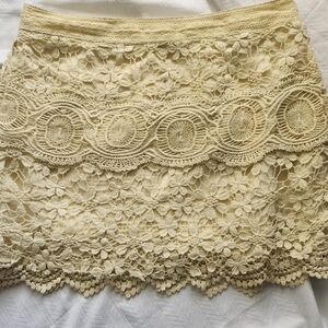 Free People Crochet Tiered Lace Mini Skirt Off White Size 2 Cotton Lined