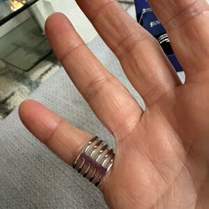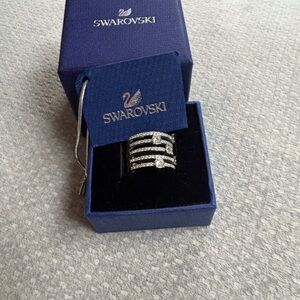 Sparkling Swarovski crystals set on multiple silver bands. Shimmering accents create a layered, modern look. Perfect as a statement or stacked with other rings. Crafted for elegant everyday wear.