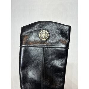 Tory Burch Size 5.5 Logo Tall Side Zipper Riding Boot Black Leather Quiet Luxury