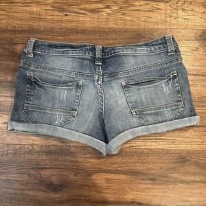 Sirens Blue Y2K Low Rise Jean Micro Mini Shorts Size 11 Cuffed Festival Summer