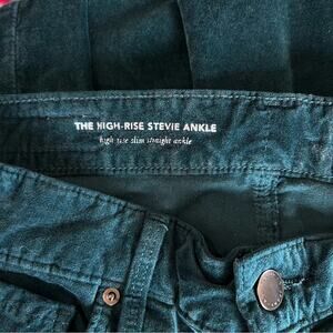 Anthropologie x AG Velvet Teal High Rise Slim Straight Stevie Ankle Pants