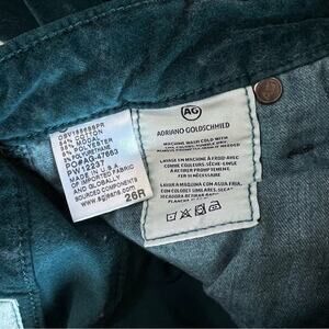 Anthropologie x AG Velvet Teal High Rise Slim Straight Stevie Ankle Pants Sz 26