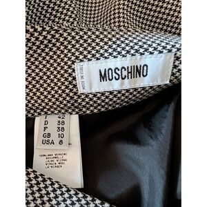 Keywords: Moschino skirt, houndstooth, pencil skirt, virgin wool, Italian fashion, designer skirt, workwear, business attire, classic, tailored, elegant, sophisticated, professional