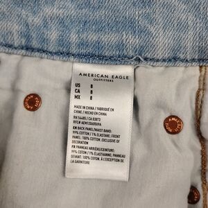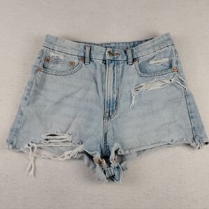 American Eagle Outfitters Light Blue Distressed High Waist Denim Shorts