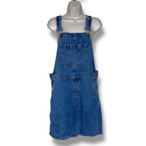 Gap Blue Denim Overall Shorts Shortalls Light Wash Cotton Women Medium Raw Hem