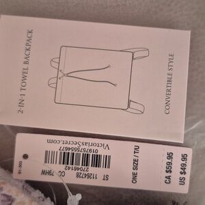 Discover the perfect blend of style and functionality with this Victoria's Secret backpack beach towel. Featuring a sophisticated purple and cream color palette, this backpack towel is designed to make a statement while saving space in your beach bag! (New in original packing.)