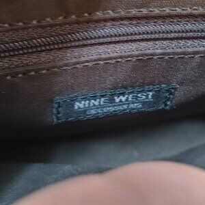 This vintage Nine West shoulder bag is a stunning addition to any outfit. The beige exterior is adorned with a geometric pattern, while the brown and beige hardware add a touch of sophistication.