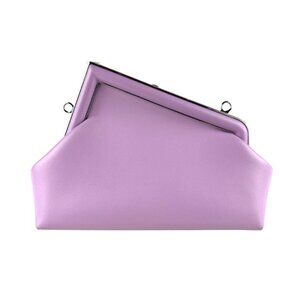 This is an authentic Fendi First Small shoulder bag in a lovely lavender color. The sleek, structured leather design features a snap closure and adjustable strap for versatile wear.