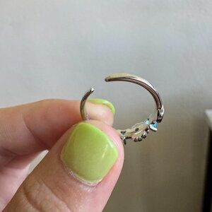 Sterling Silver 925 Colorful Yin Yang Daisy & Blue Heart Gemstone Ring
