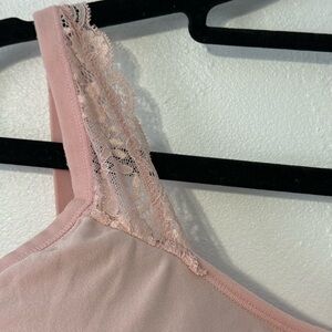 Experience comfort and style with this chic pink bralette, featuring elegant lace trim. Perfect for any occasion.