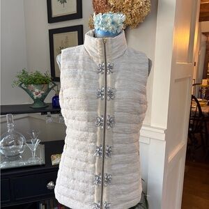 Lilly Pulitzer Cream Puffer Vest with Silver Accents