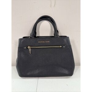 Michael Kors Hailee Leather Satchel Crossbody Bag Black Gold Purse NO STRAP