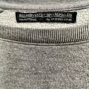 AllSaints Co. Ltd Spitalfields Women's Quilted Shoulder Gray Sweatshirt Sz 8 EUC