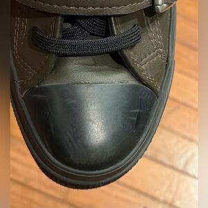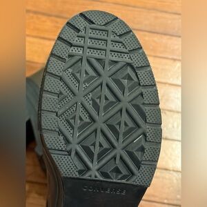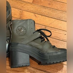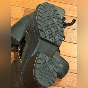 Bold Converse boots in black and olive. Rugged design with chunky sole. Perfect for edgy style.