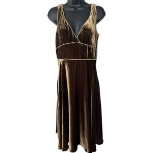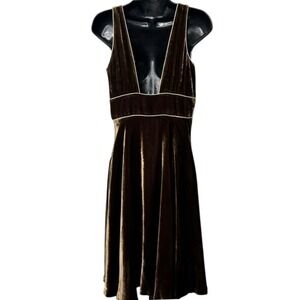 Keywords: velvet dress, midi dress, brown dress, sleeveless dress, v-neck dress, cocktail dress, party dress, zara woman, rayon dress, aline dress, evening dress, special occasion dress, womens dress, size medium