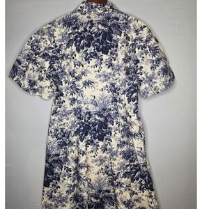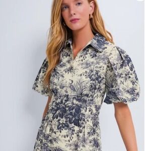 Tuckernuck Delaney Toile Print Dress Women XL Blue Cream Short Sleeve Pockets