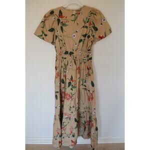 Anthropologie The Somerset Maxi Dress Tiered Smock Floral Khaki Tan