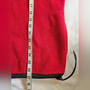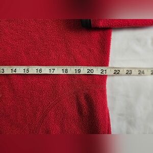 Mickey & Co Womens Red Emblem Pullover Long Sleeve Fuzzy Jacket Size Medium measurements pictured