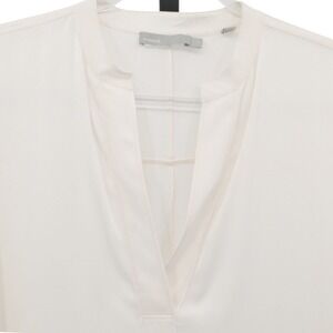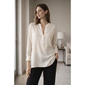 Vince Oversized Silk Tunic Blouse V Neck Long Sleeve High Low Cream Size Medium