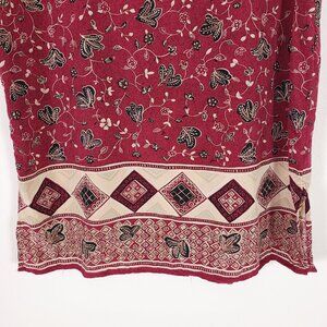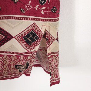 Red, cream, black botanical & geometric eclectic mixed print