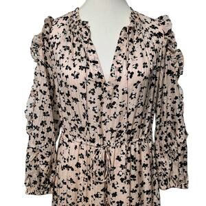 Ulla Johnson Fantine Dress Blush Pink Long Sleeve Floral Peasant Midi Size 4