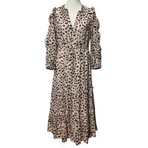 Ulla Johnson Fantine Dress Blush Pink Floral Tiered Prairie Boho Cottagecore Midi