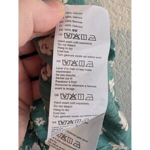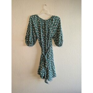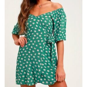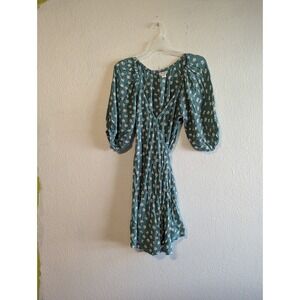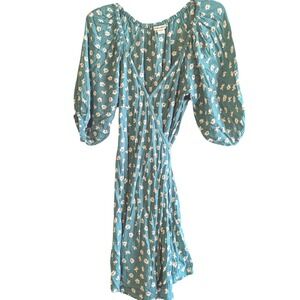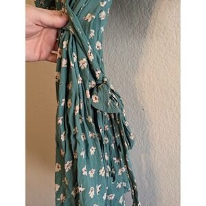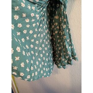 Billabong Teal Green Floral Off Shoulder Wrap Dress Puff Sleeve Rayon Womens L