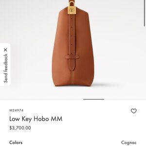 Like new, carried one time Low Key Hobo PM bag from Louis Vuitton in the color Cognac. Bought at the Aspen, CO store in January. Comes with original dust bag, box with ribbon, and very large shopping bag.