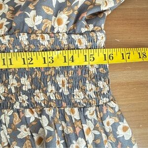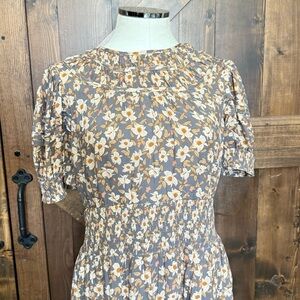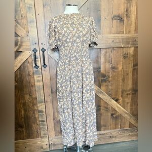 Bohme Gray Brown Floral Prairie Puff Sleeve Boho Midi Dress