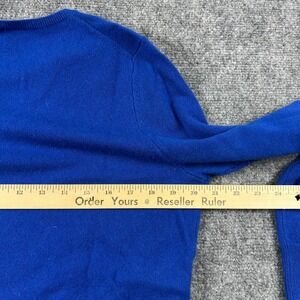 Pure cashmere sweater in a vibrant royal blue hue offers exceptional softness and warmth. Designed with a classic V-neckline and long sleeves, this petite-sized knit features ribbed trim at the cuffs and hem for a polished finish. The luxurious extra-long yarns provide a smooth texture and beautiful color depth, making it a versatile staple for sophisticated layering or standalone wear.