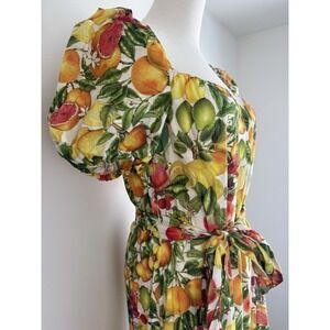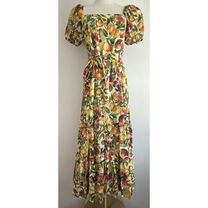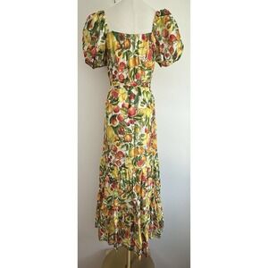 Antonio Melani Charlotte Dress Size 2 Floral Fruit Tiered Maxi Puff Sleeve Lemon