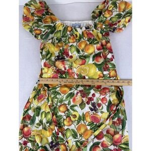 Antonio Melani Charlotte Dress Size 2 Floral Fruit Lined Tiered Maxi Puff Sleeve Lemon Cherry.