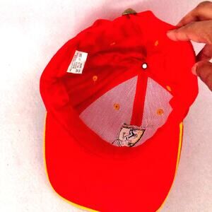 Red Ferrari Embroidered Baseball Cap Hat Gold Emblems Adjustable Hook & Loop 100% Cotton, Good pre-owned condition