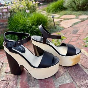 Luxurious Chanel leather wrapped platform heels made in Italy.