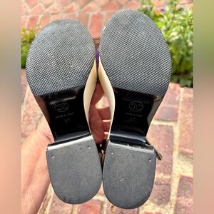 Theyβve had nonskid sole protectors added on for long life, fastens with a CC silver tone buckle.