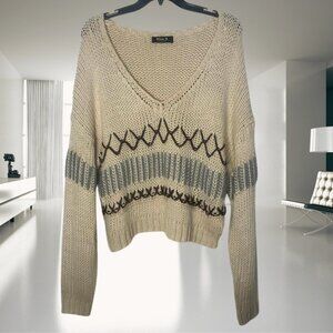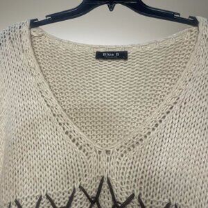 Blue B Collection Chunky Knit Sweater Women’s Large Cream Brown Blue Cozy Boho